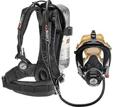 A self contained breathing apparatus , or SCBA, sometimes referred to as a compressed air breathing apparatus, or simply breathing apparatus BA, is device worn by rescue workers, fire fighters and others to provide breathable air in an "immediately Dangerous to Life or Health" atmosphere IDLH. When not used underwater, they are sometimes called industrial breathing sets. The term "self contained" means that the breathing set is not dependent on a remote supply (e.g. through a long hose). If designed for use under water, it is called SCUBA (Self Contained Underwater Breathing Apparatus).